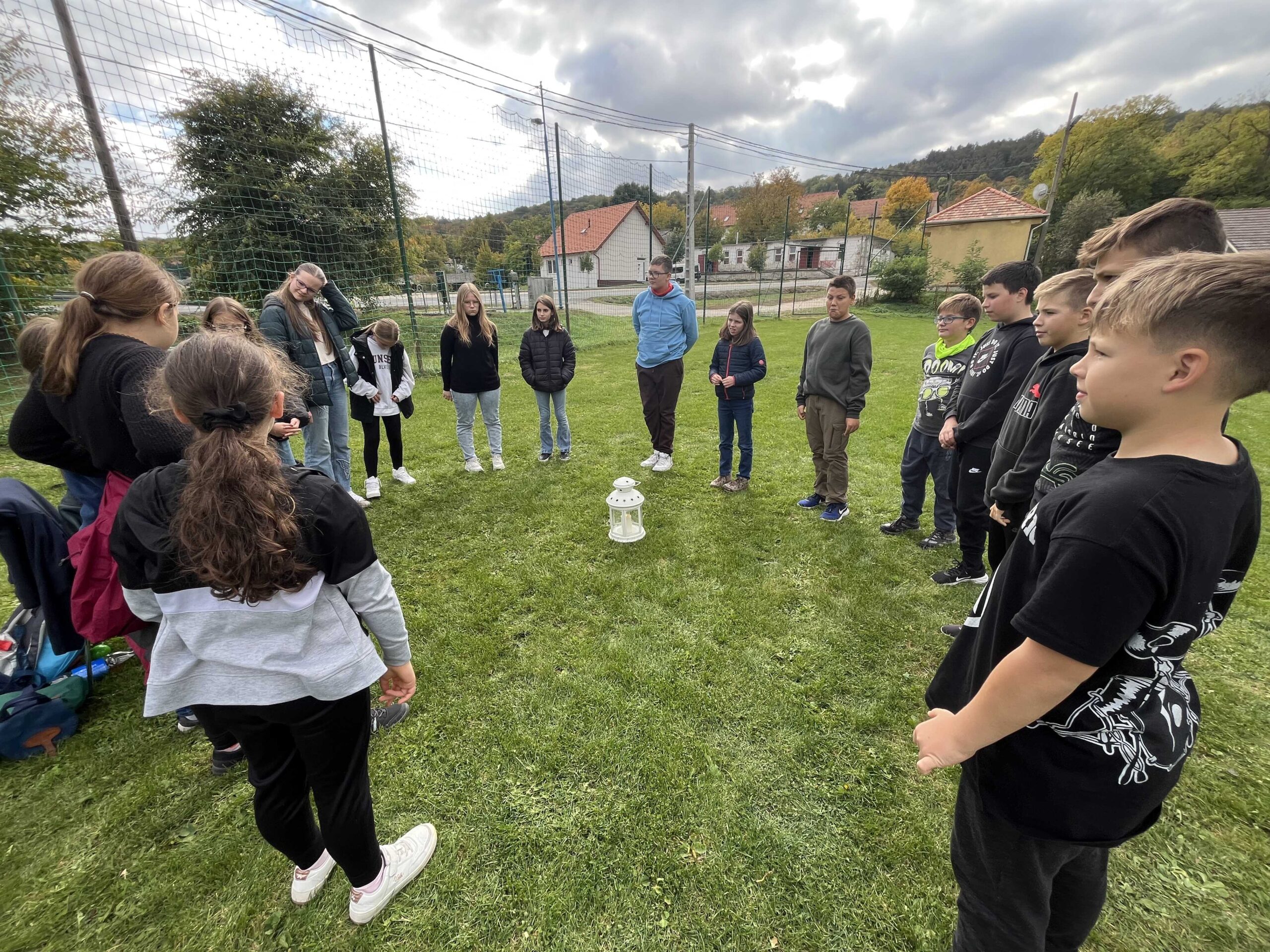 Ebéd után sem ért véget a nap lelki része – sőt, ekkor kezdődött igazán a „Mária Útja” program a sportpályán és a romnál. Hat állomás várt ránk, mindegyik egy-egy különleges üzenettel Mária életéből: bizalom, öröm, csend, szeretet, kitartás és remény.