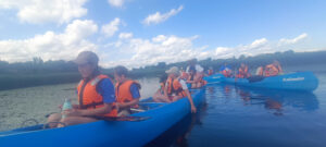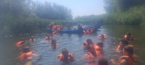 2025 nyarán először jelentkeztem, ebbe az iskola által szervezett táborba. Csak azt tudtam róla, hogy kenu tábor és a Tisza-tónál lesz, ahol még nem jártam. Nagy izgalommal vártam ezt a programot. Bea néni a tábor vezetője megküldte nekünk az indulás előtt a részletes programot. Akkor derült ki számomra, hogy sátorban fogunk aludni. Eljött az indulás napja. Vonattal utaztunk első tábori helyszínünkre, Tiszafüredre.
