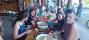 Második állomásunk Tiszavalk volt, majd Poroszlóra érkeztünk. A napi kenuzások alkalmával vízi madarakat csodálhattunk meg, megtudtuk mi az a sulyom, amit a bátrabbak meg is kóstoltak. A táj sok helyen vadregényes, vékony ösvényeken vezetett utunk a kenukban. A tavon vízi rózsák úsztak. láthattunk gémeket, kócsagokat, rengeteg gólyát és bölömbikát, ami a nevével ellentétben egy madár. Esténként sem unatkoztunk, bográcsoztunk, a fiúk horgásztak, a lányok elkésztették az esti sminkjüket. A tábort „túlélőtábornak” hívtuk, hiszen nem sűrűn alszunk sátorban, ritkán bográcsozunk és nem mozgunk napi két három órát. A kísérő tanárnőinkre bármikor, bármiben lehetett számítani. Akkor is, ha eltévedtünk, ha hiányzott a család, szívesen beszélgettek velünk. Bea néni egész tubus Fenistil -jét elhasználtuk a szúnyogcsípésinkre, de ő ezt valószínű nem bánta. Bea néni, Borika nénivel és Edit nénivel fáradhatatlanul azon dolgoztak, hogy mi jól érezzük magunkat. Azt gondolom, hogy nagyon jól dolgoztak, mert minden gyerek, aki részt vett a táborban szuperül érezte magát. Köszönjük szépen a lehetőséget, jövőre találkozunk!